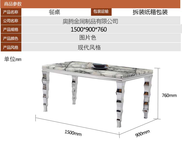 奥腾 餐厅家具现代简约家用餐桌实用大理石饭桌T1805