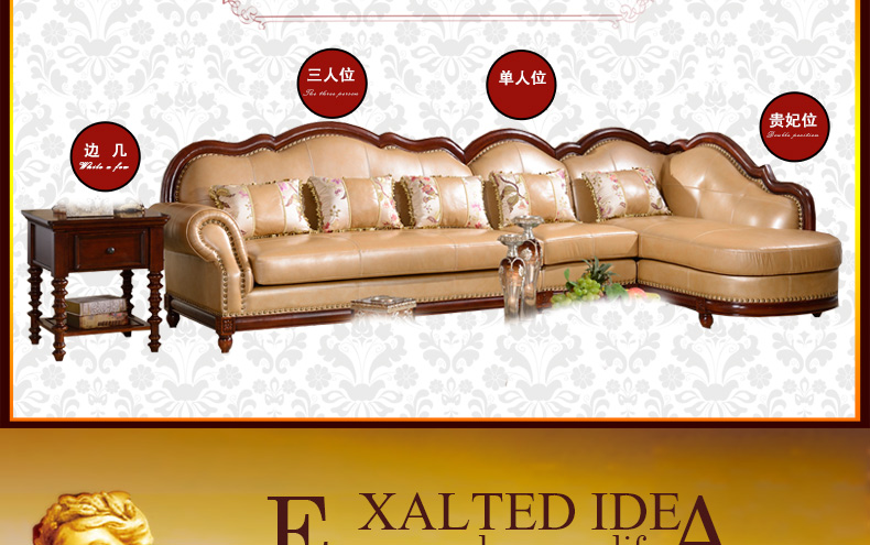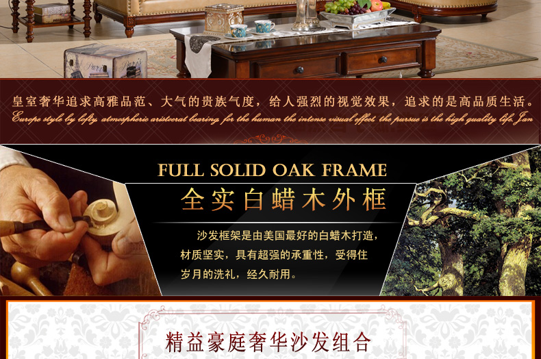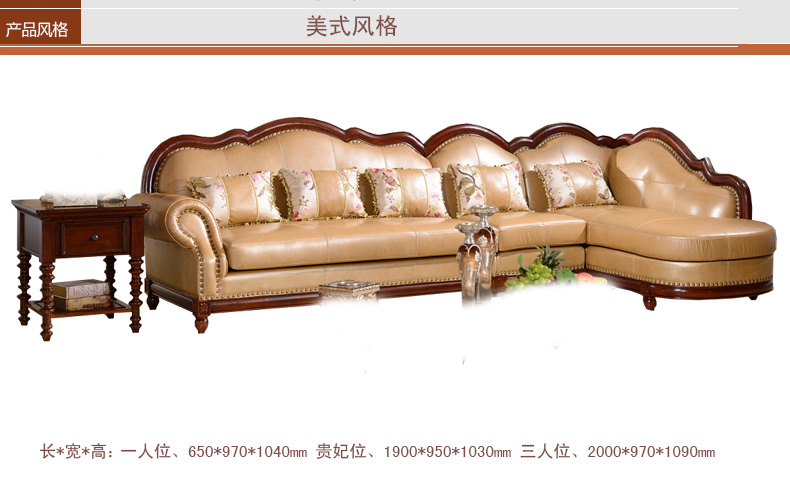 精益豪庭 美式沙发组合奢华美式实木沙发L型客厅转角沙发贵妃317