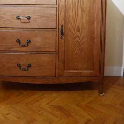 取材天然,由楸木与中纤板结合制成,结构牢固,结实耐用,木纹外观优美,密度高,不易吸水,抗腐蚀,绿色环保漆,0甲醛,安心呵护家人健康。