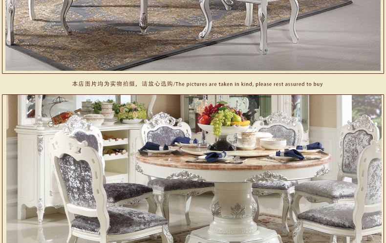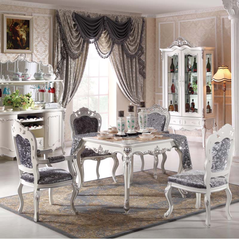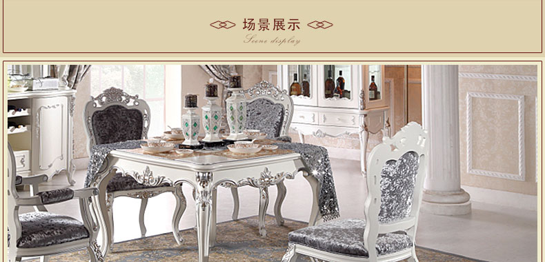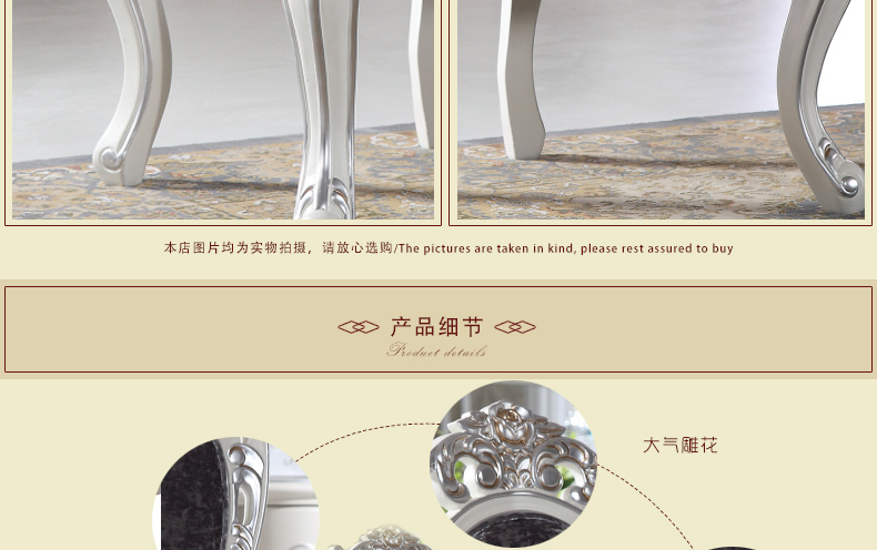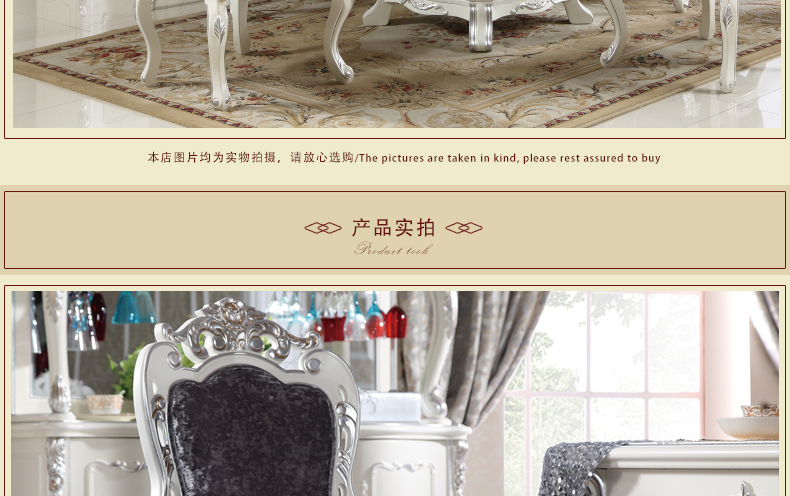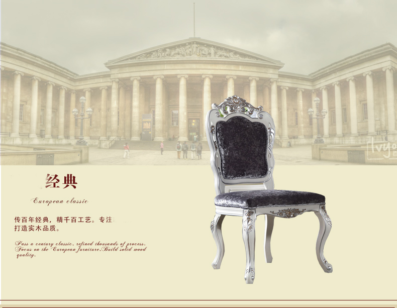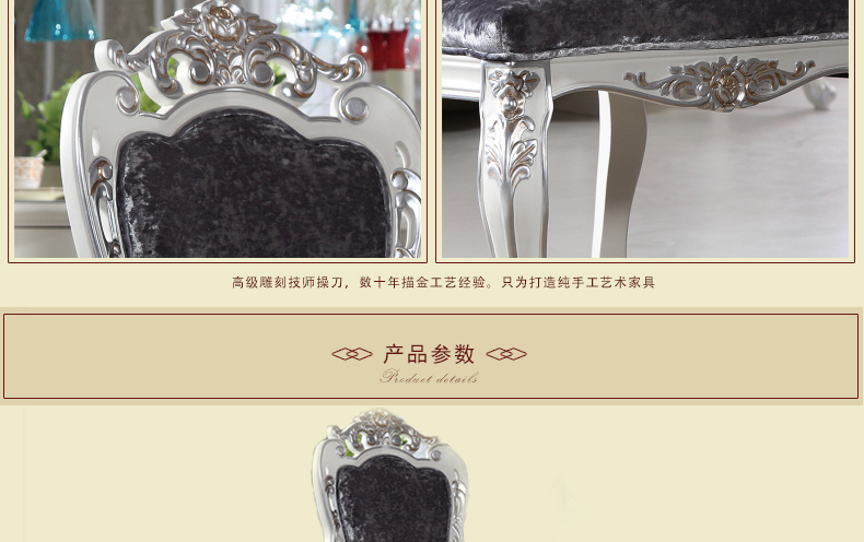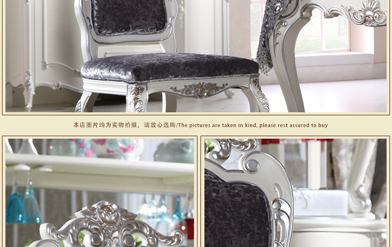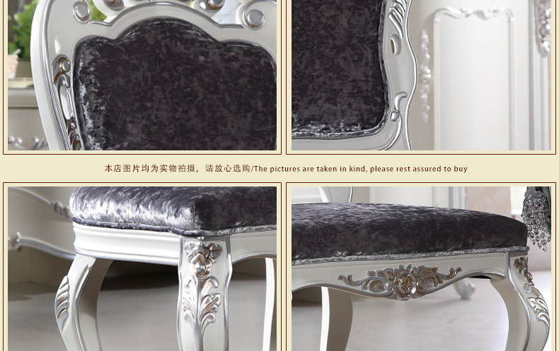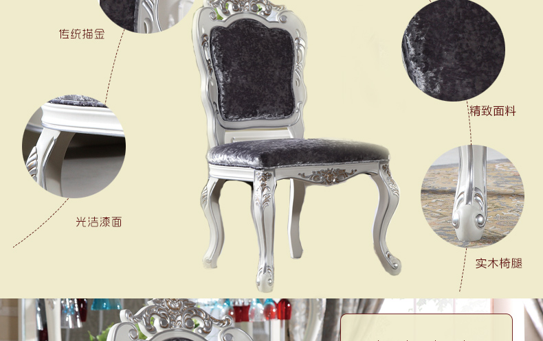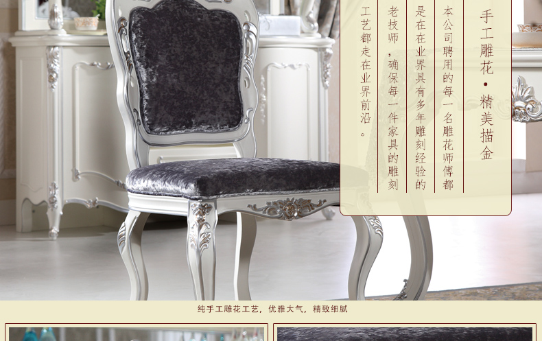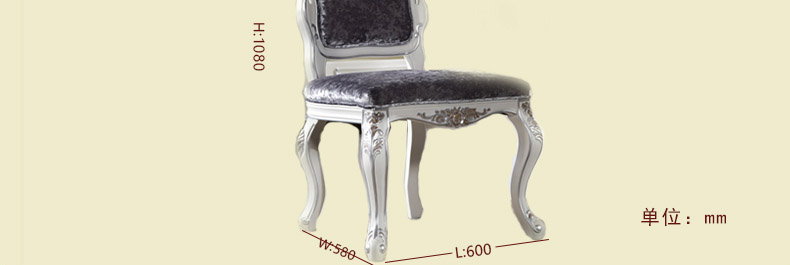 尚多家居 CY801象牙白+银箔做旧法式雕花 布艺靠背无扶手餐椅座椅