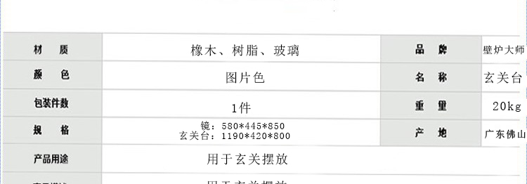 外围尺寸:镜:580*45*850 玄关台:1190*420*800