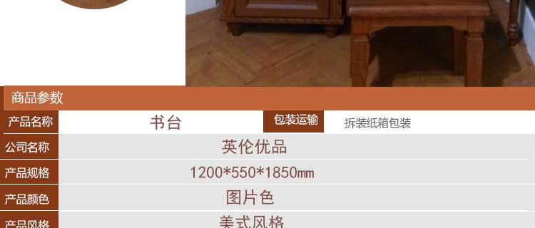 英伦优品 美式实木书桌 电脑办公桌写字台 美式书房书台家具MYT202