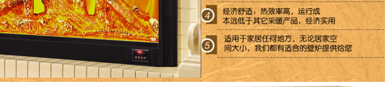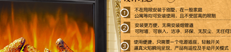 壁炉具有清洁卫生安全可靠装卸便利燃烧利用率高等特点;壁炉不仅能节省取暖成本,还可以带来高雅的观赏效果.安全便利的享受壁炉所带来的温馨和舒适.轻触开关,神奇的火焰效果瞬间展现.华美的火焰将为您居家装潢带来美丽的心情.嵌入式和独立式电壁炉给房间带来温馨和舒适.