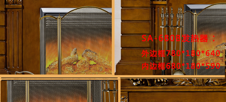 尺寸: 壁炉+装饰炉芯:1860*355*1210; SA-680B发热器:780*180*640(外边框) 680*180*590(内边框); ST-700B装饰炉芯:725*170*700;