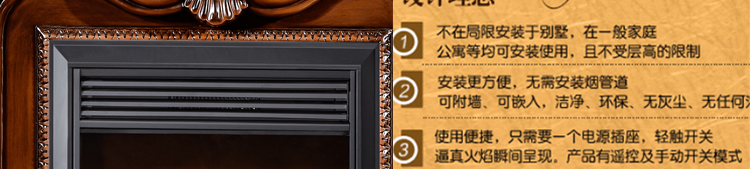 壁炉具有清洁卫生安全可靠装卸便利燃烧利用率高等特点;壁炉不仅能节省取暖成本,还可以带来高雅的观赏效果.安全便利的享受壁炉所带来的温馨和舒适.轻触开关,神奇的火焰效果瞬间展现.华美的火焰将为您居家装潢带来美丽的心情.嵌入式和独立式电壁炉给房间带来温馨和舒适.