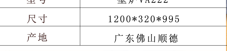 尺寸: VA222壁炉1200*320*995棕褐色F1-A;适配装饰炉芯ST-595B尺寸620*170*680;适配发热器SA-580B外边框尺寸680*180*675,内边框尺寸580*180*615.