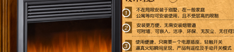 壁炉具有清洁卫生安全可靠装卸便利燃烧利用率高等特点;壁炉不仅能节省取暖成本,还可以带来高雅的观赏效果.安全便利的享受壁炉所带来的温馨和舒适.轻触开关,神奇的火焰效果瞬间展现.华美的火焰将为您居家装潢带来美丽的心情.嵌入式和独立式电壁炉给房间带来温馨和舒适.