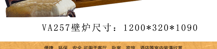 尺寸: VA257壁炉1200*320*1090(棕色F2-B);适配装饰炉芯ST-700B尺寸725*170*700;适配发热器SA-580B外边框尺寸680*180*675,内边框尺寸580*180*615.