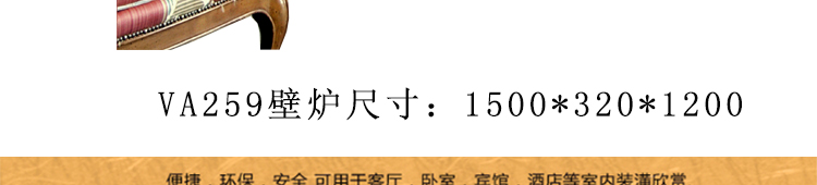 尺寸: VA259壁炉1500*320*1200(棕色F2-A );适配装饰炉芯ST-700B尺寸725*170*700;适配发热器SA-580B外边框尺寸680*180*675,内边框尺寸580*180*615.