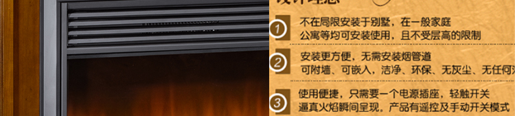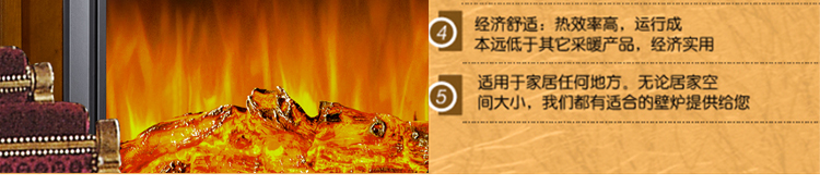 壁炉具有清洁卫生安全可靠装卸便利燃烧利用率高等特点;壁炉不仅能节省取暖成本,还可以带来高雅的观赏效果.安全便利的享受壁炉所带来的温馨和舒适.轻触开关,神奇的火焰效果瞬间展现.华美的火焰将为您居家装潢带来美丽的心情.嵌入式和独立式电壁炉给房间带来温馨和舒适.