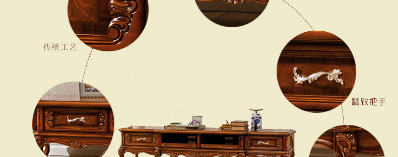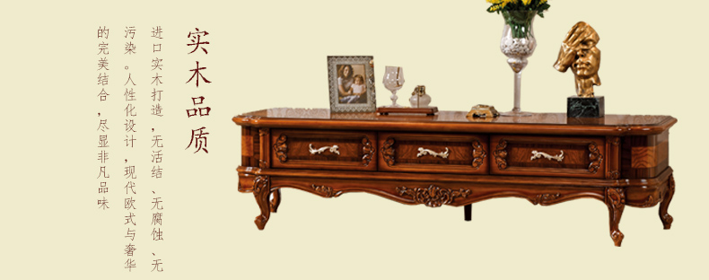 艾玛尼 欧式电视柜乡村复古电视柜地柜实木电视柜客厅家具M602地柜
