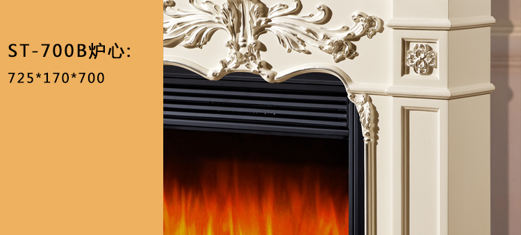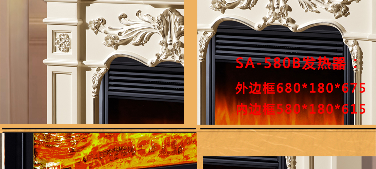 尺寸: 壁炉外框+装饰炉芯:1200*320*1080; ST-700B装饰炉芯:725*170*700; SA-580B发热器:680*180*675(外边框) 580*180*615(内边框)