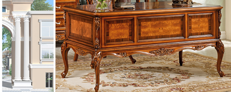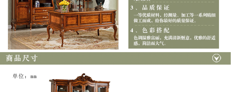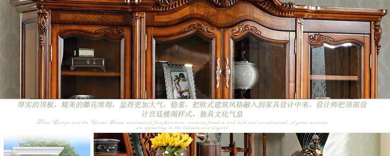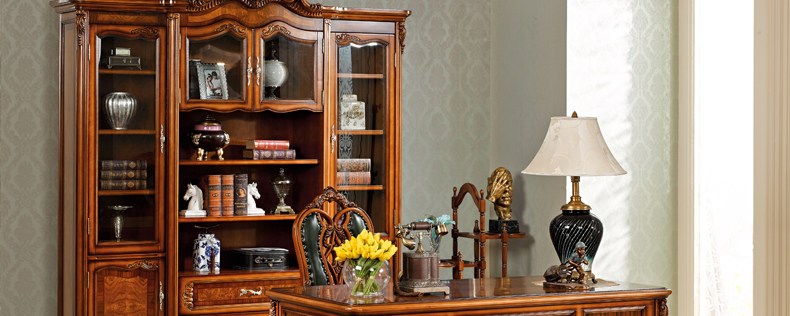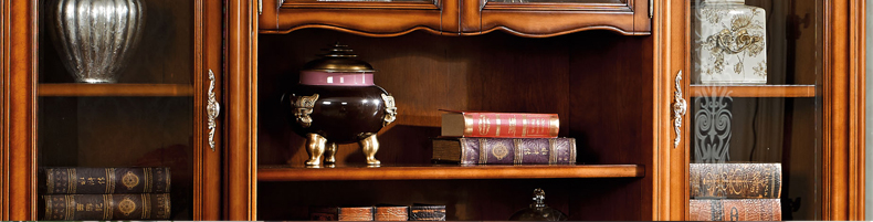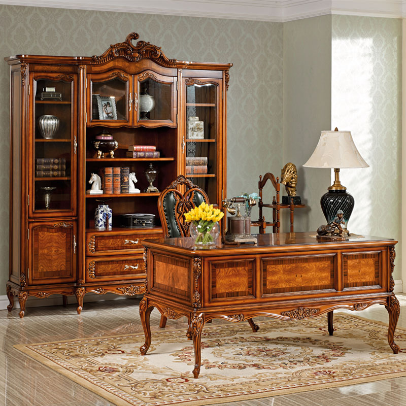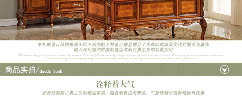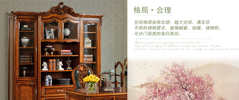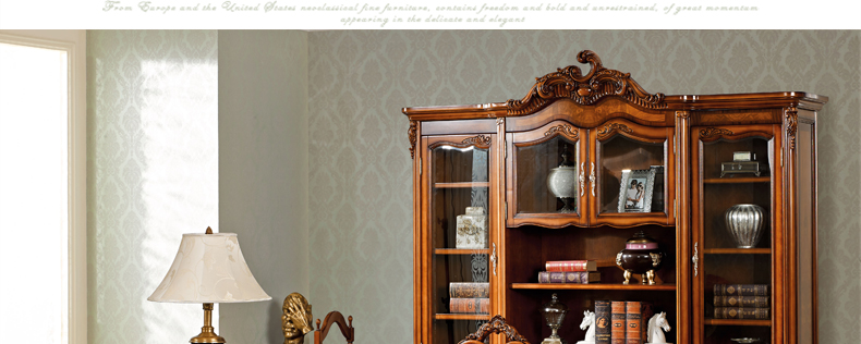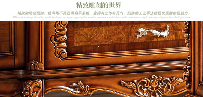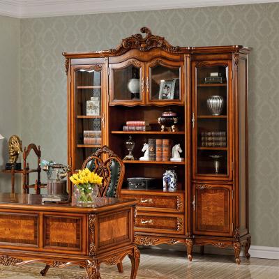 艾玛尼 实木书柜欧式玻璃门书柜书房实木书桌仿古大书橱置物架艾玛尼M6605