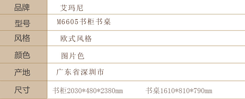外围尺寸为书柜2030*480*2380mm,书桌1610*810*790mm