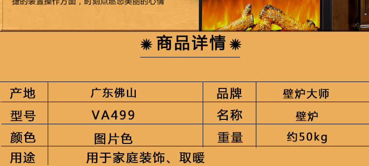 壁炉大师电壁炉欧式壁炉架电视柜装饰柜取暖炉芯实木边框壁炉VA499