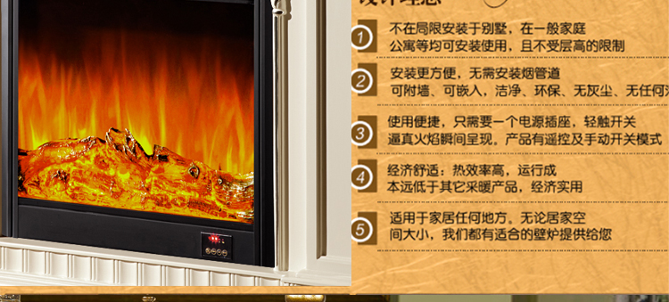 壁炉具有清洁卫生安全可靠装卸便利燃烧利用率高等特点;壁炉不仅能节省取暖成本,还可以带来高雅的观赏效果.安全便利的享受壁炉所带来的温馨和舒适.轻触开关,神奇的火焰效果瞬间展现.华美的火焰将为您居家装潢带来美丽的心情.嵌入式和独立式电壁炉给房间带来温馨和舒适.