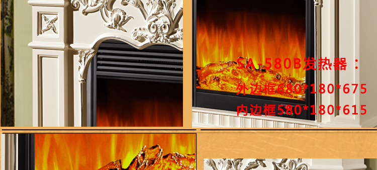 尺寸: 壁炉外框+装饰炉芯:1200*320*1080; ST-700B装饰炉芯:725*170*700; SA-580B发热器:680*180*675(外边框) 580*180*615(内边框)