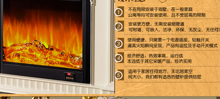 壁炉具有清洁卫生安全可靠装卸便利燃烧利用率高等特点;壁炉不仅能节省取暖成本,还可以带来高雅的观赏效果.安全便利的享受壁炉所带来的温馨和舒适.轻触开关,神奇的火焰效果瞬间展现.华美的火焰将为您居家装潢带来美丽的心情.嵌入式和独立式电壁炉给房间带来温馨和舒适.