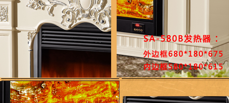 尺寸: 壁炉外框+装饰炉芯 :1200*320*1080; ST-700B装饰炉芯:725*170*700; SA-580B发热器:680*180*675(外边框) 580*180*615(内边框)