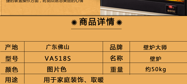 壁炉大师欧式简约壁炉装饰柜取暖壁炉架实木欧式装饰炉芯VA518S