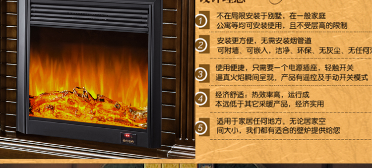 壁炉具有清洁卫生安全可靠装卸便利燃烧利用率高等特点;壁炉不仅能节省取暖成本,还可以带来高雅的观赏效果.安全便利的享受壁炉所带来的温馨和舒适.轻触开关,神奇的火焰效果瞬间展现.华美的火焰将为您居家装潢带来美丽的心情.嵌入式和独立式电壁炉给房间带来温馨和舒适.