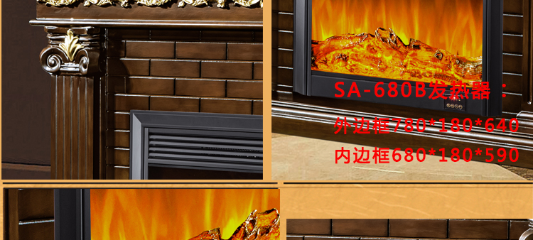 尺寸: 壁炉外框+装饰炉芯:1500*320*1200; ST-700B装饰炉芯:725*170*700; SA-680B发热器:780*180*640(外边框) 680*180*590(内边框)