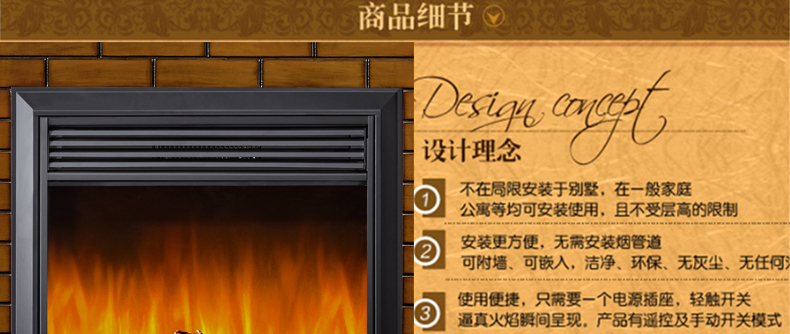 壁炉具有清洁卫生安全可靠装卸便利燃烧利用率高等特点;壁炉不仅能节省取暖成本,还可以带来高雅的观赏效果.安全便利的享受壁炉所带来的温馨和舒适.轻触开关,神奇的火焰效果瞬间展现.华美的火焰将为您居家装潢带来美丽的心情.嵌入式和独立式电壁炉给房间带来温馨和舒适.