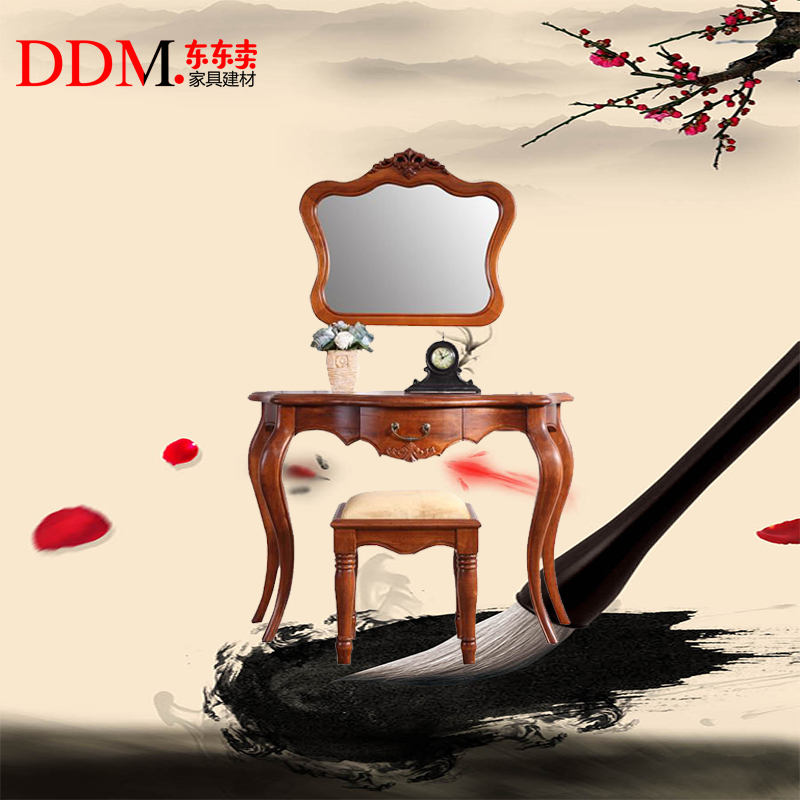 东东卖美式梳妆台妆镜卧室实木柏木梳妆台组装雕花化妆桌实木家具