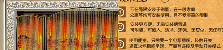 壁炉具有清洁卫生安全可靠装卸便利燃烧利用率高等特点;壁炉不仅能节省取暖成本,还可以带来高雅的观赏效果.安全便利的享受壁炉所带来的温馨和舒适.轻触开关,神奇的火焰效果瞬间展现.华美的火焰将为您居家装潢带来美丽的心情.嵌入式和独立式电壁炉给房间带来温馨和舒适.