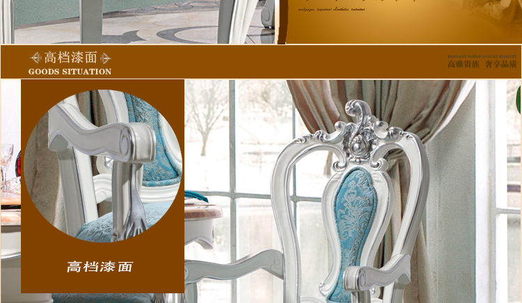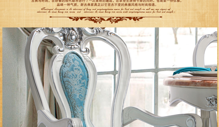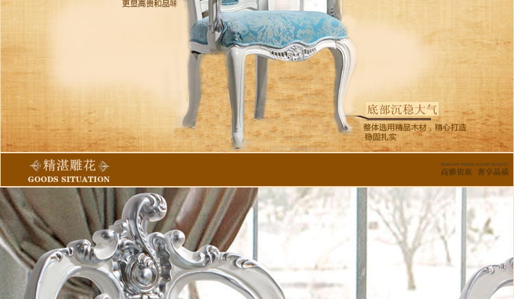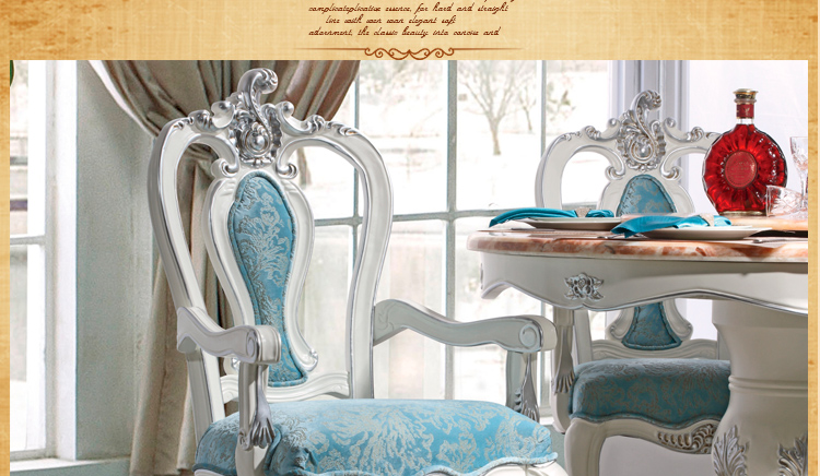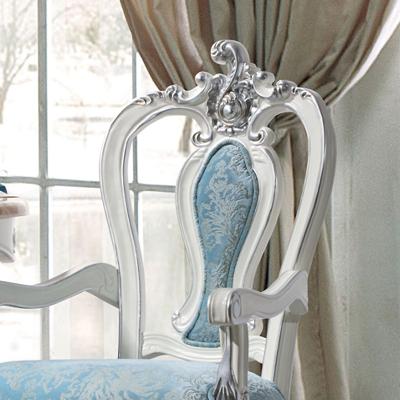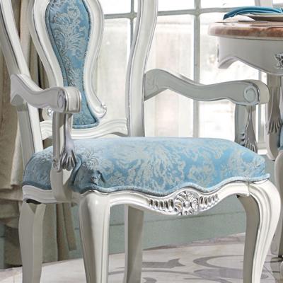尚多家居 CY803A象牙白+银箔做旧法式雕花 靠背有扶手餐椅座椅