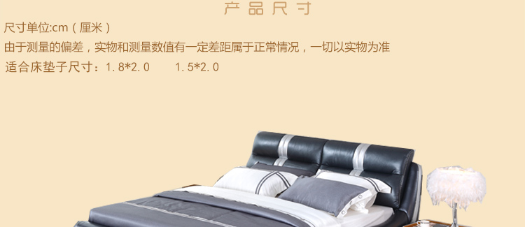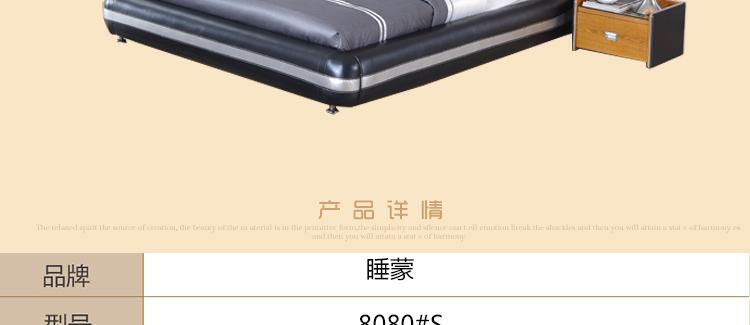 睡蒙时尚真皮双人软床1.8米1.5米小户型现代简约卧室婚床8080#S