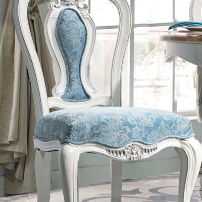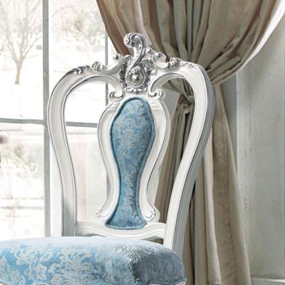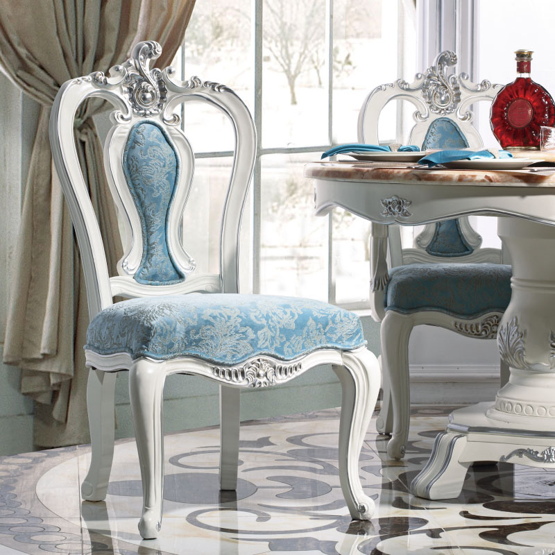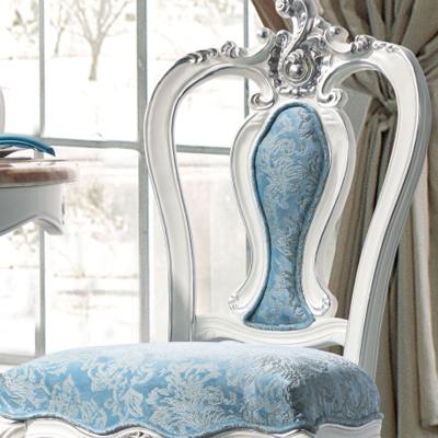 尚多家居 CY803象牙白+银箔做旧法式雕花 靠背无扶手餐椅座椅