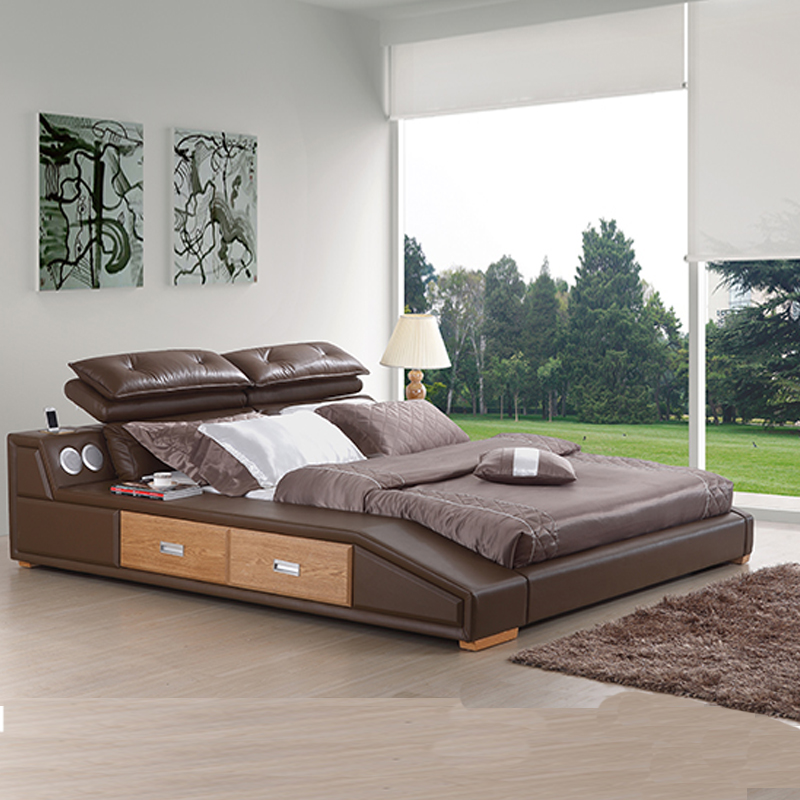 睡蒙时尚真皮双人软床1.8米1.5米小户型现代简约卧室婚床8085