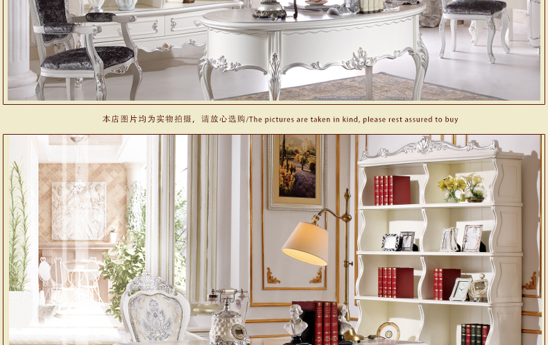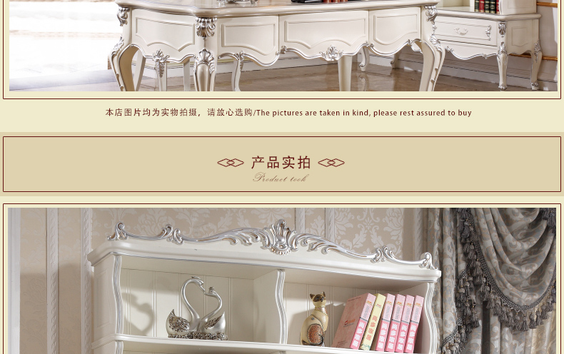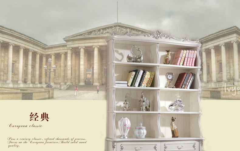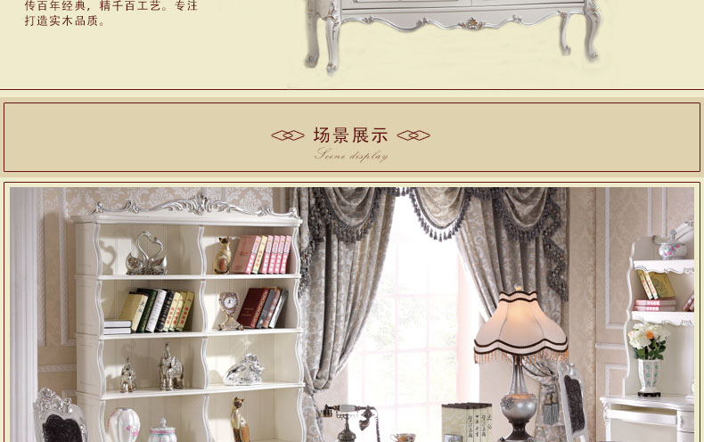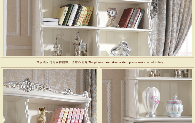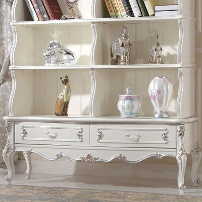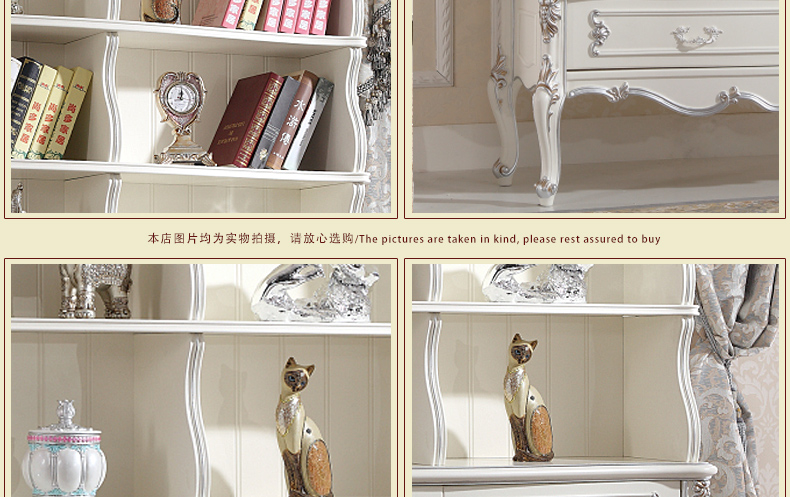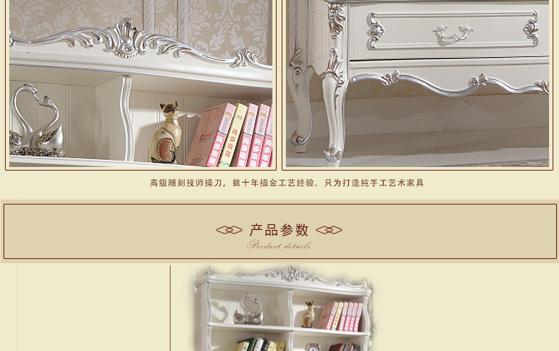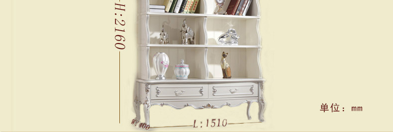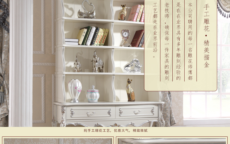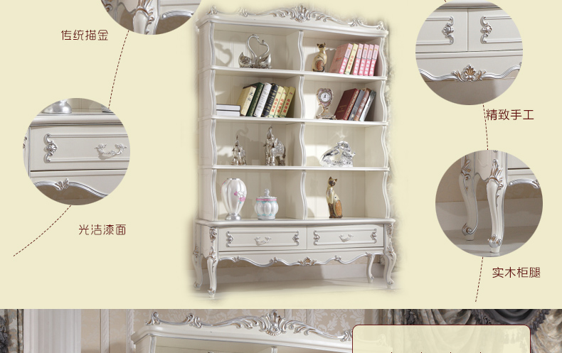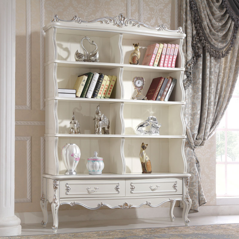尚多家居 SG801象牙白+银箔做旧法式 空格抽屉书柜置物柜展示柜