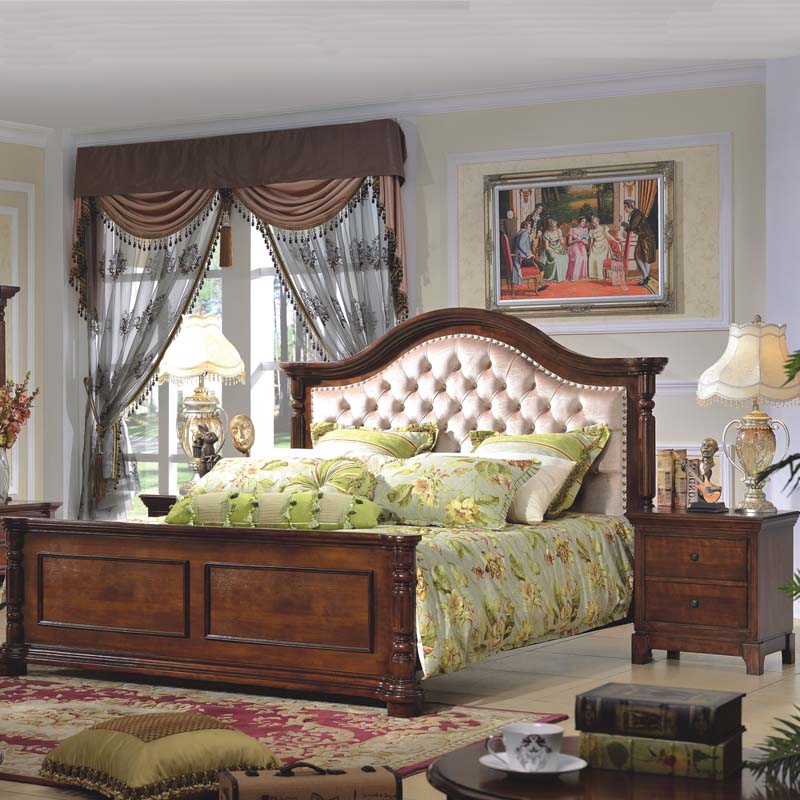 精益豪庭美式床乡村复古1.8米双人床新古典皮床美式大床家具128