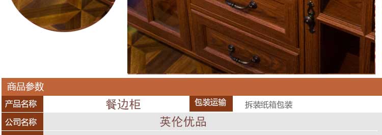 英伦优品 美式餐边柜实木储物碗柜酒柜收纳柜茶水柜 MYN001
