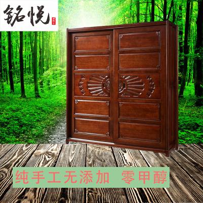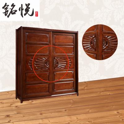 铭悦新中式风格实木质家具 纯进口黄鸡翅木整体趟门衣柜 更大空间的储物柜