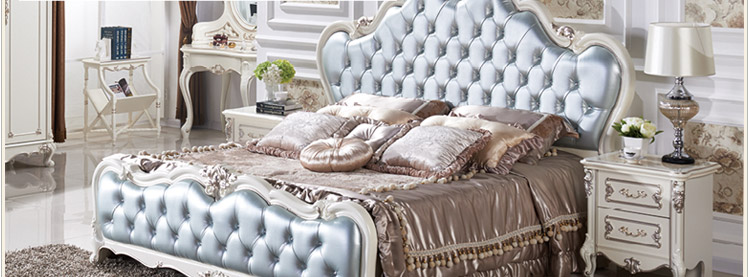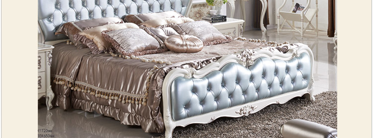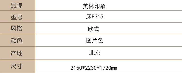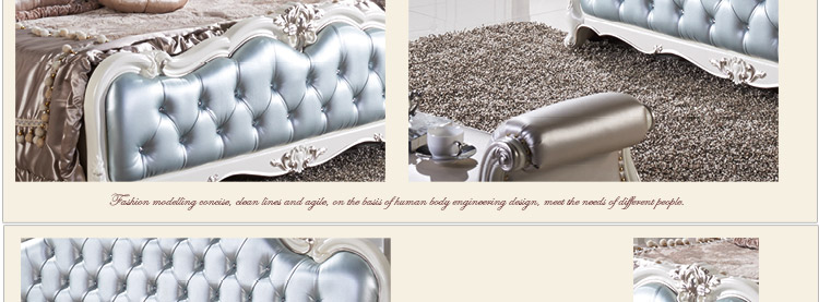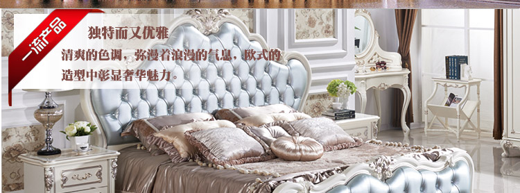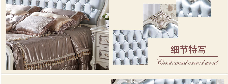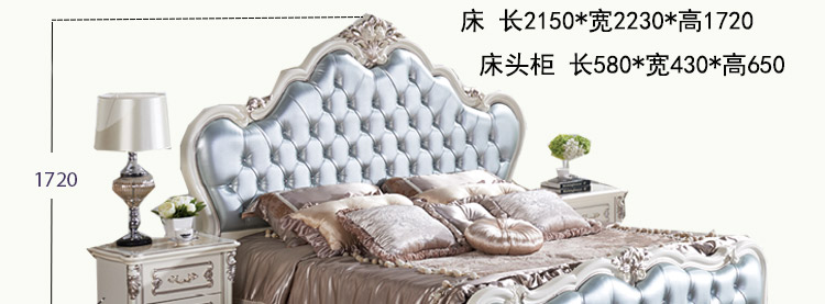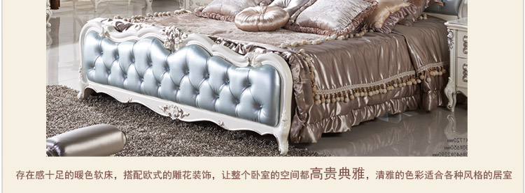 美林印象 欧式精美雕花床尾带软包双人实木太子婚床 f315