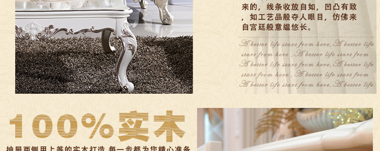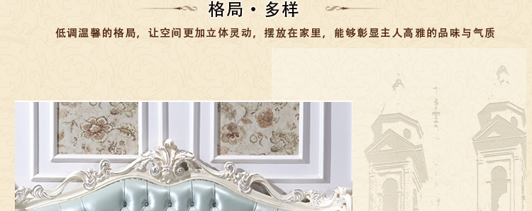 尊典欧式贵族系列采用四道环保油漆工艺色泽亮丽淡雅素洁;精致雕刻与浪漫完美融合;纯手工描金妙笔生花显示高贵气;很多商家为省成本而忽略欧式的高贵气质,而我们一直被模仿,从没被超越;足不出户,触手可得~~!