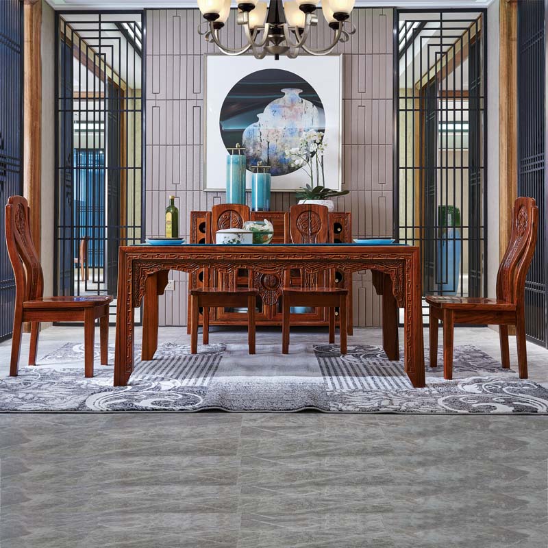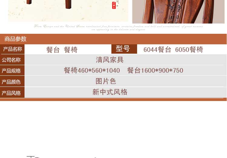 清风 实木家具 餐厅餐台餐桌椅 新中式风格6044餐台6050餐椅