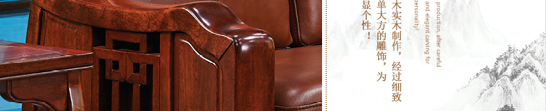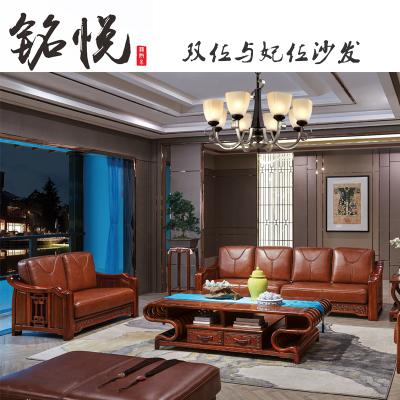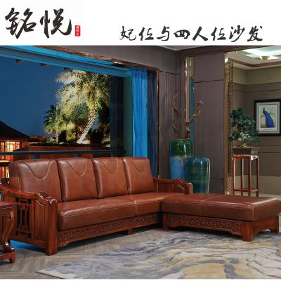铭悦新中式风格实木质家具 进口纯黄鸡翅木组合沙发 真皮沙发舒适环保