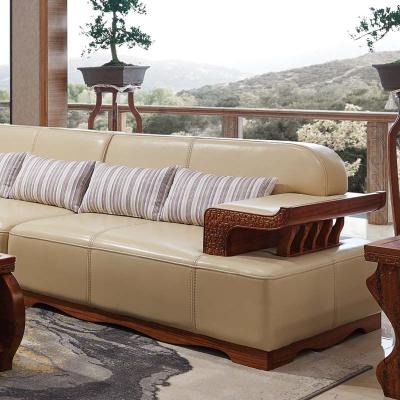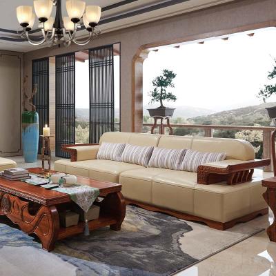 清风 实木沙发组合中式新款沙发组合皮沙发组合6055沙发6065茶几6066茶几