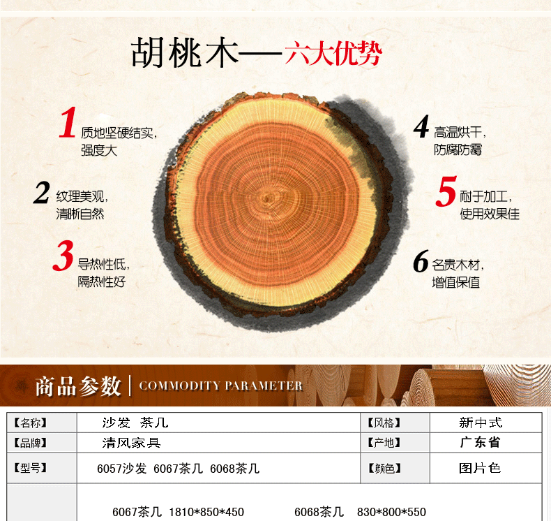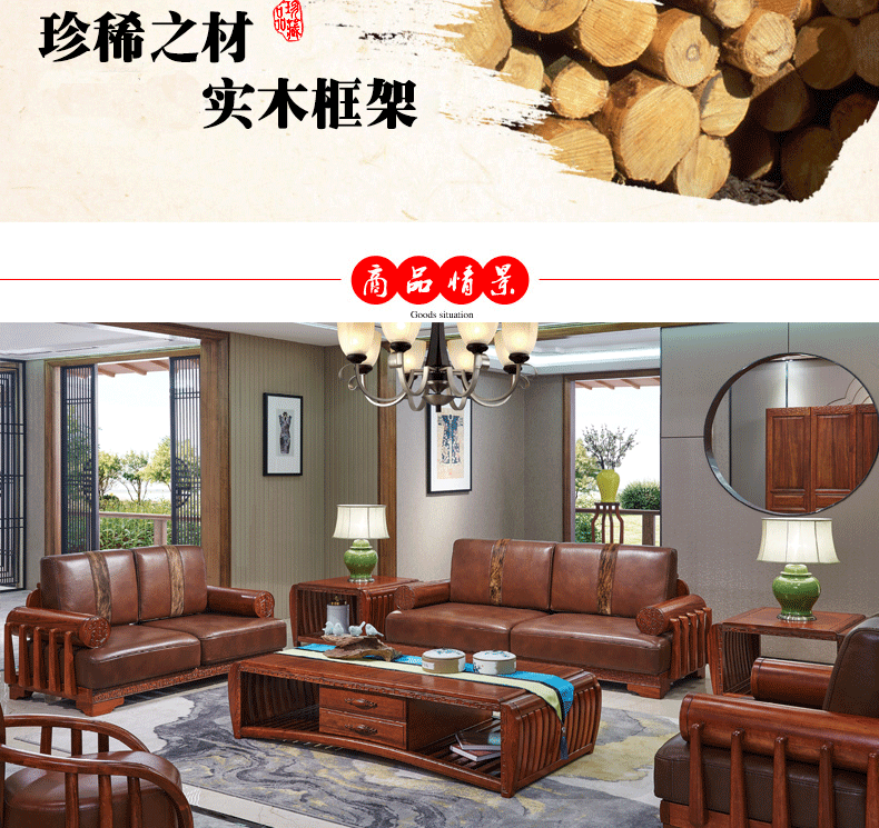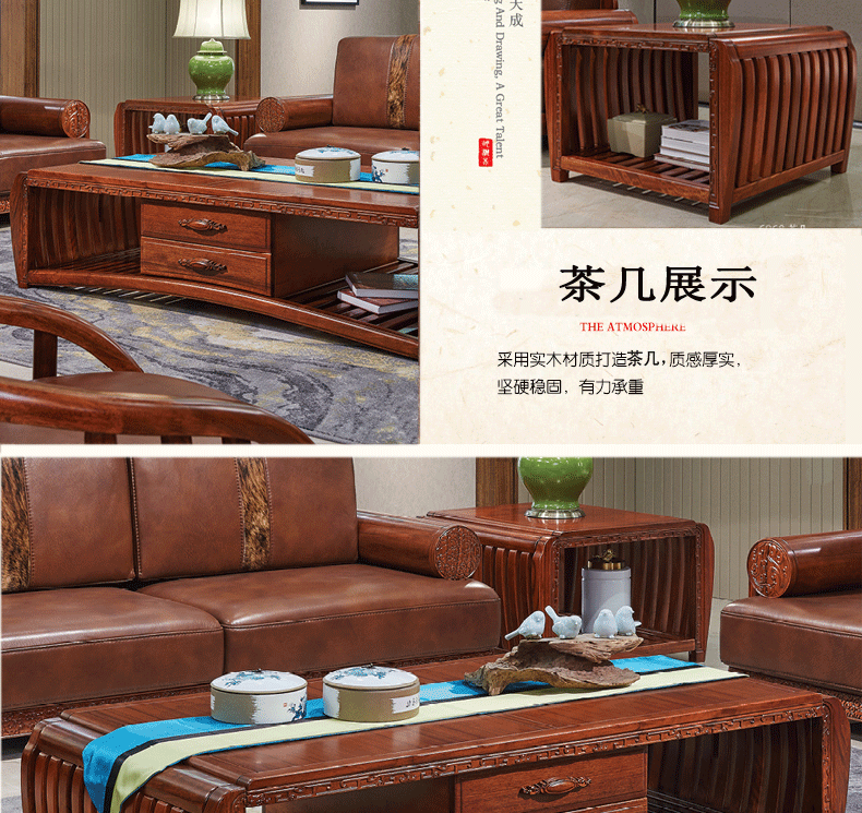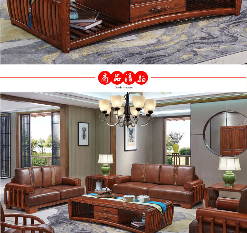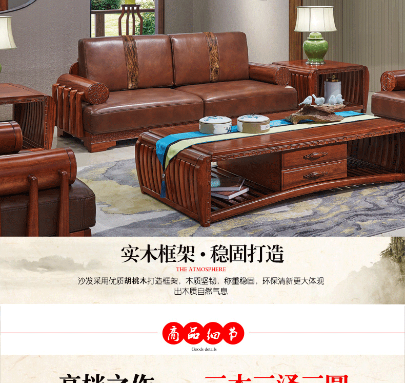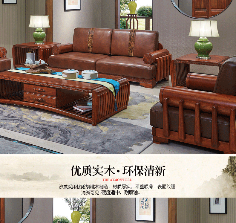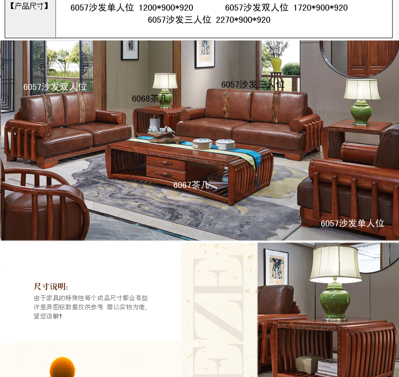 清风 客厅沙发组合新中式风格 茶几沙发组合6057沙发6067茶几6068茶几