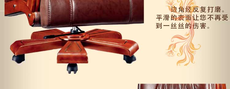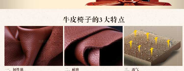椅子采用优质真皮缝制,保证了坐面的透气性和耐磨性,经久耐用!扶手采用天然实木材料,纹理自然,手感细腻,色泽光润,朴实而沉重。