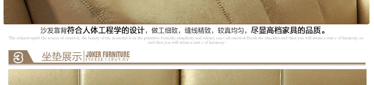 各个细节都做得很到位,软硬度也合适,家人都很满意沙发很漂亮,做工很好!跟我的客厅装修风格很匹配,跟我想象的一样,做工面料都令人满意。