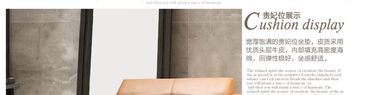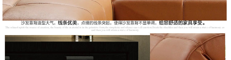 进口头层真皮沙发线条流畅简洁,厚实饱满,温暖色调的自然美,极具艺术美感,强烈的贵族风情。让人感觉舒适,享受奢华。简约坚固 外观细腻淡雅,自然简洁,形尚简约