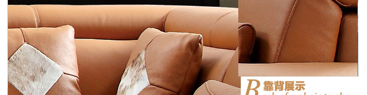 沙发是真皮的,很有档次,款式和颜色也显得很温馨。