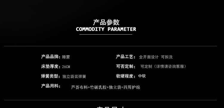 • 芦荟布料+竹碳乳胶+独立袋+四周护绵260mm
