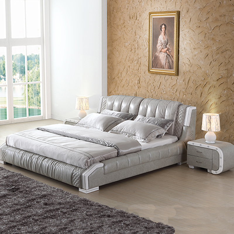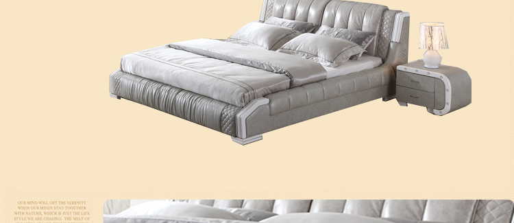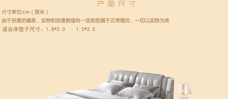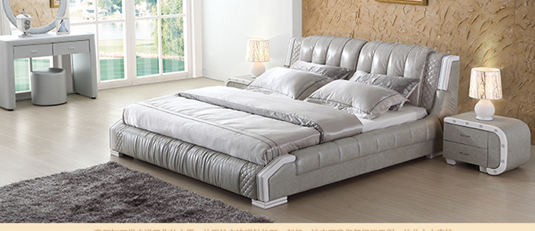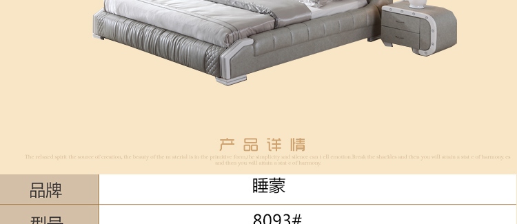 睡蒙 皮床现代时尚真皮双人床卧室皮艺床家具1.8米婚床 8093