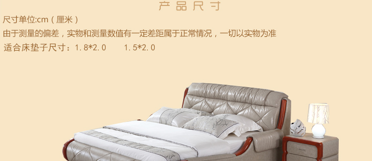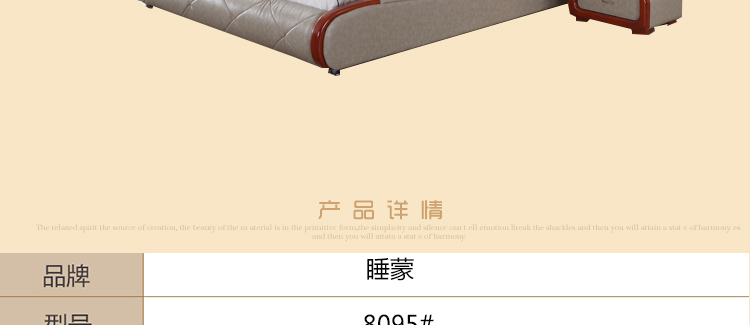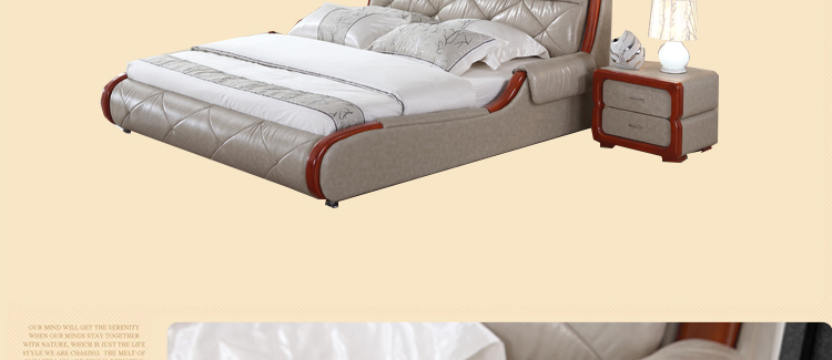 睡蒙 床皮床双人床皮艺床1.5米婚床1.8米真皮床卧室家具简约现代 8095